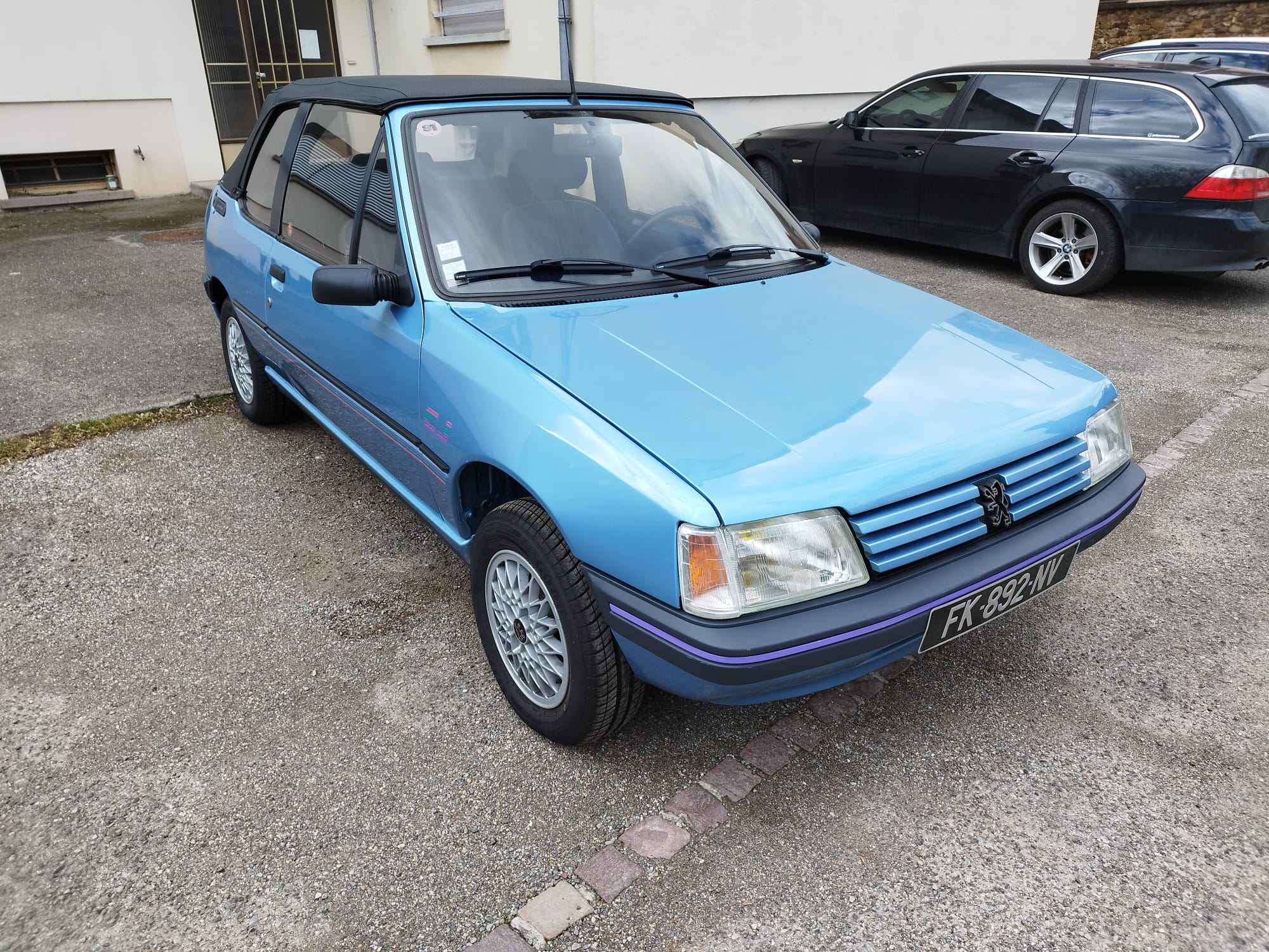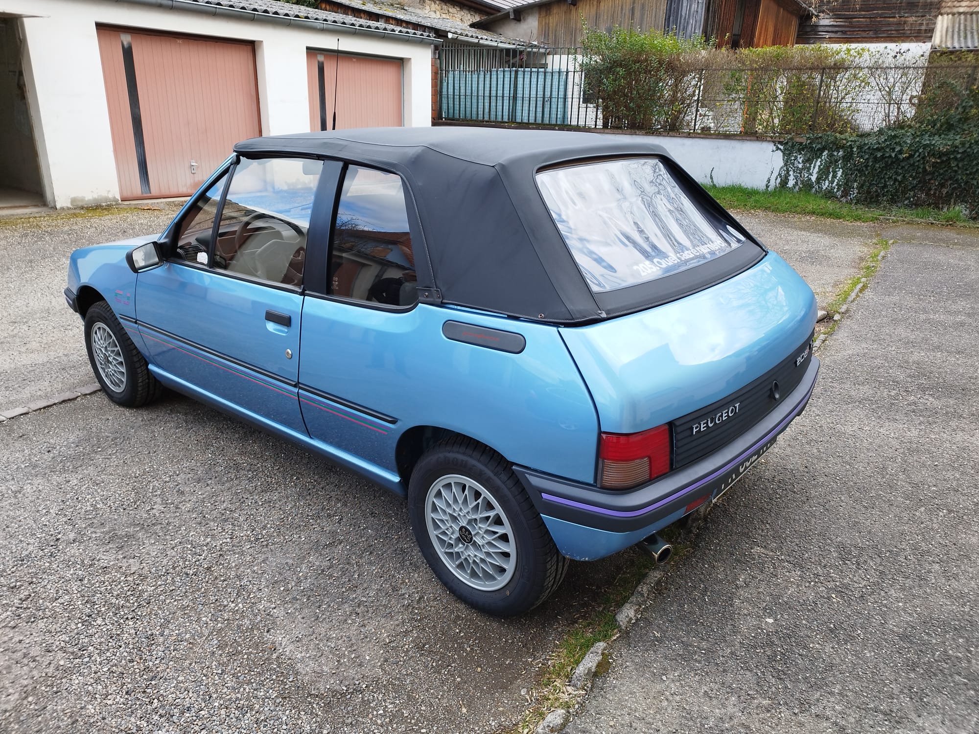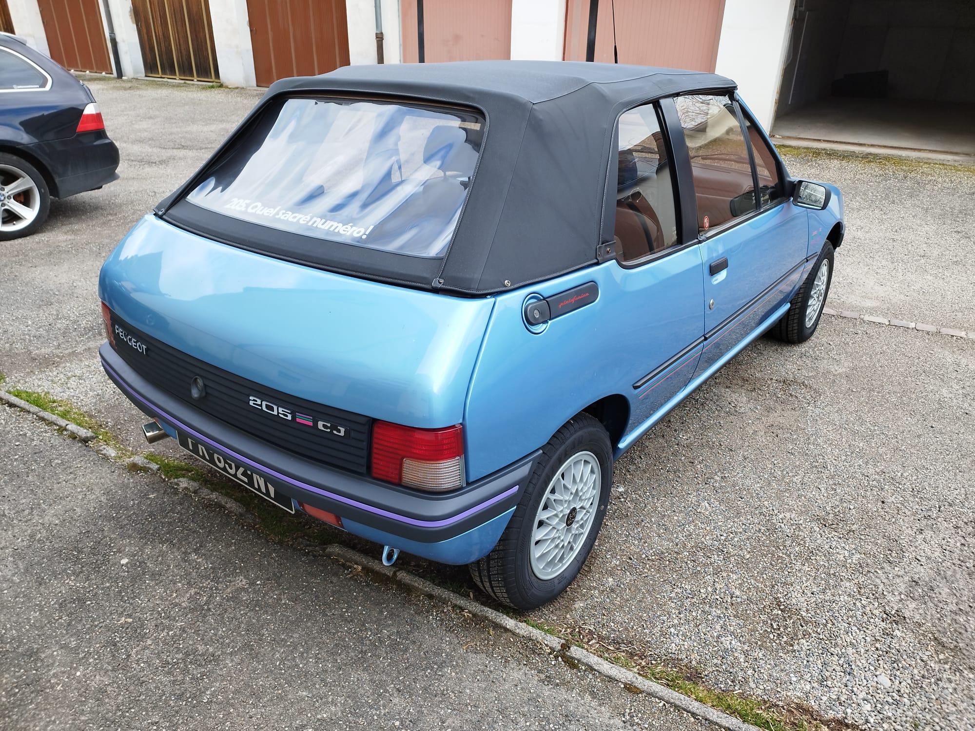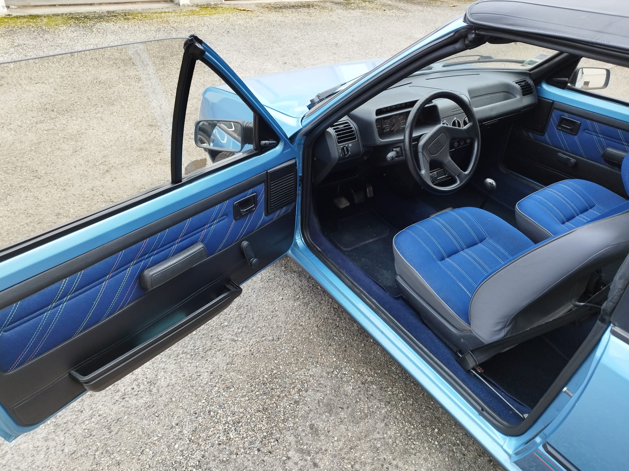Peugeot 205 CJ, couleur bleu azzuro. L’état est impressionnant pour les 31 ans de la voiture.