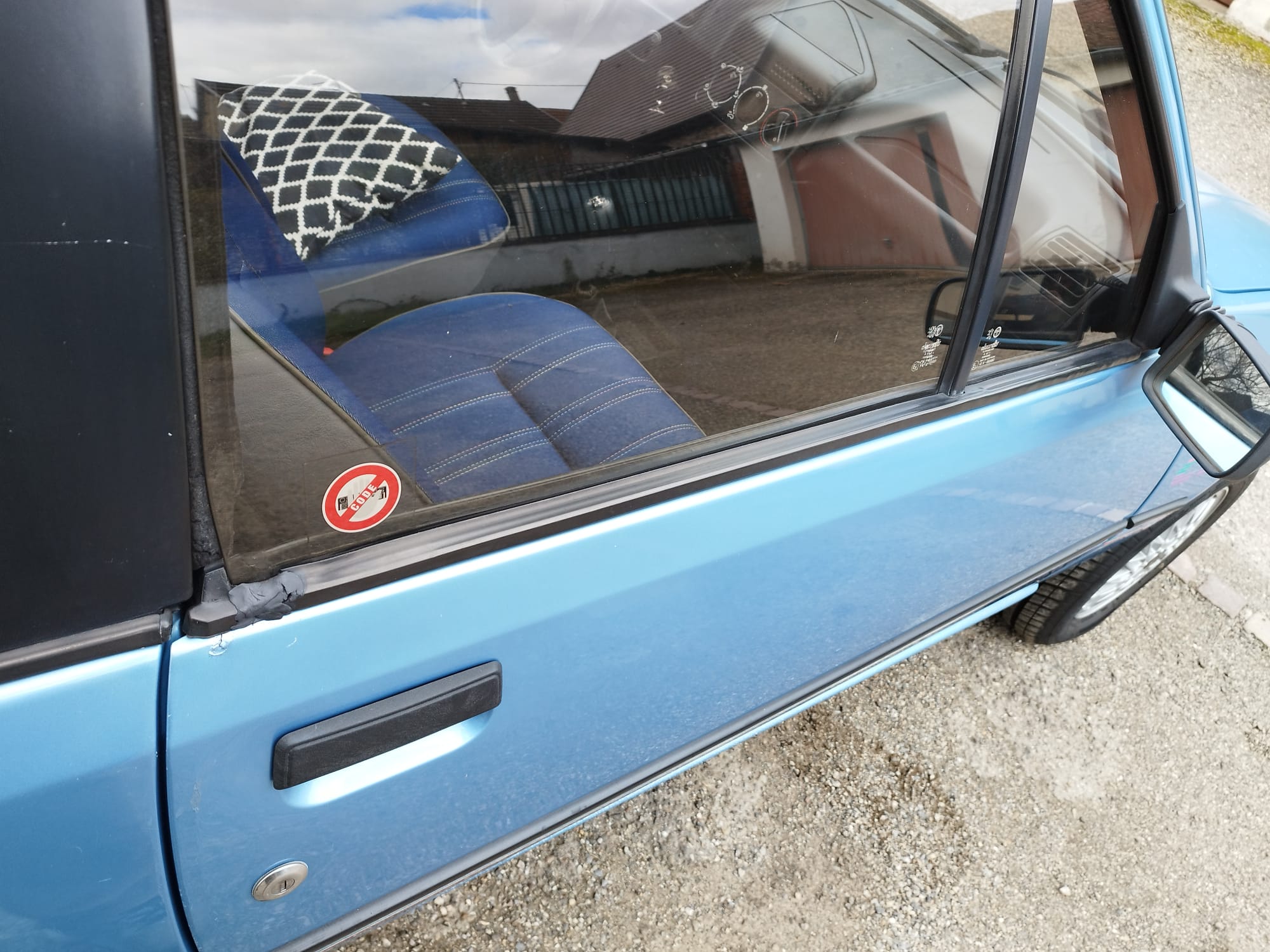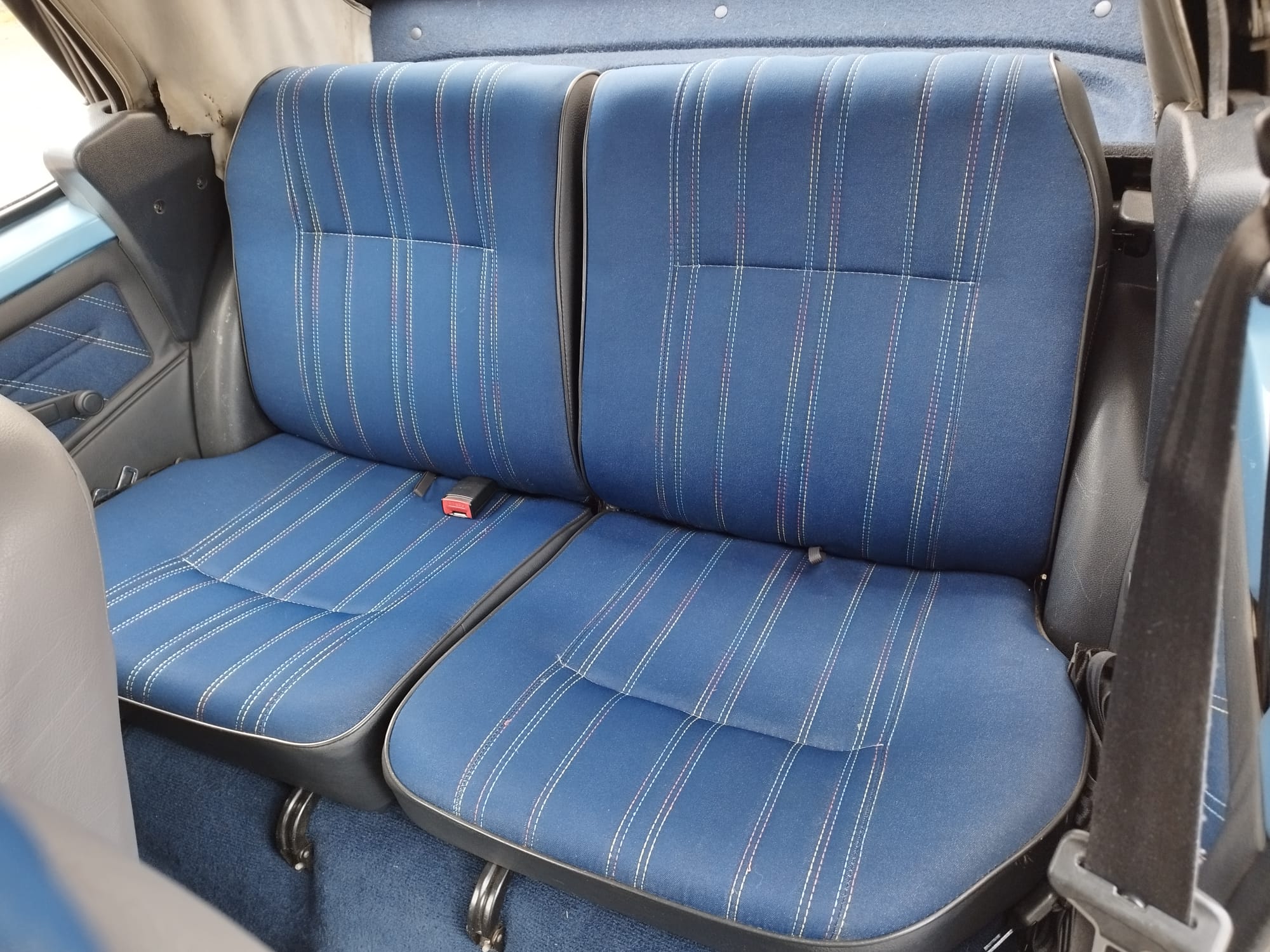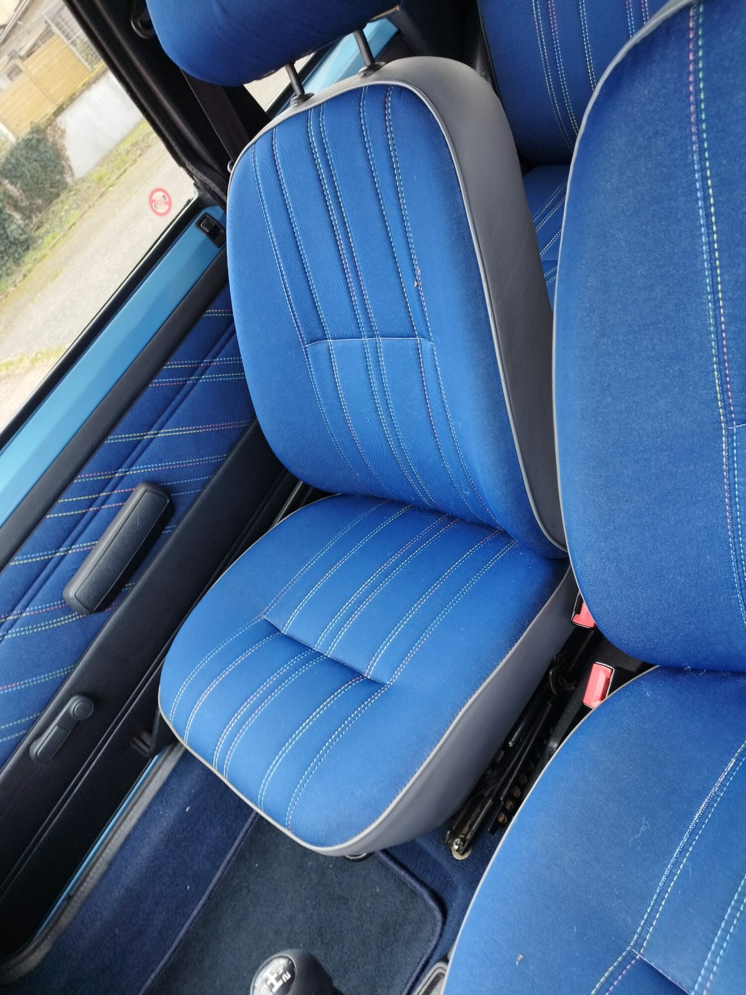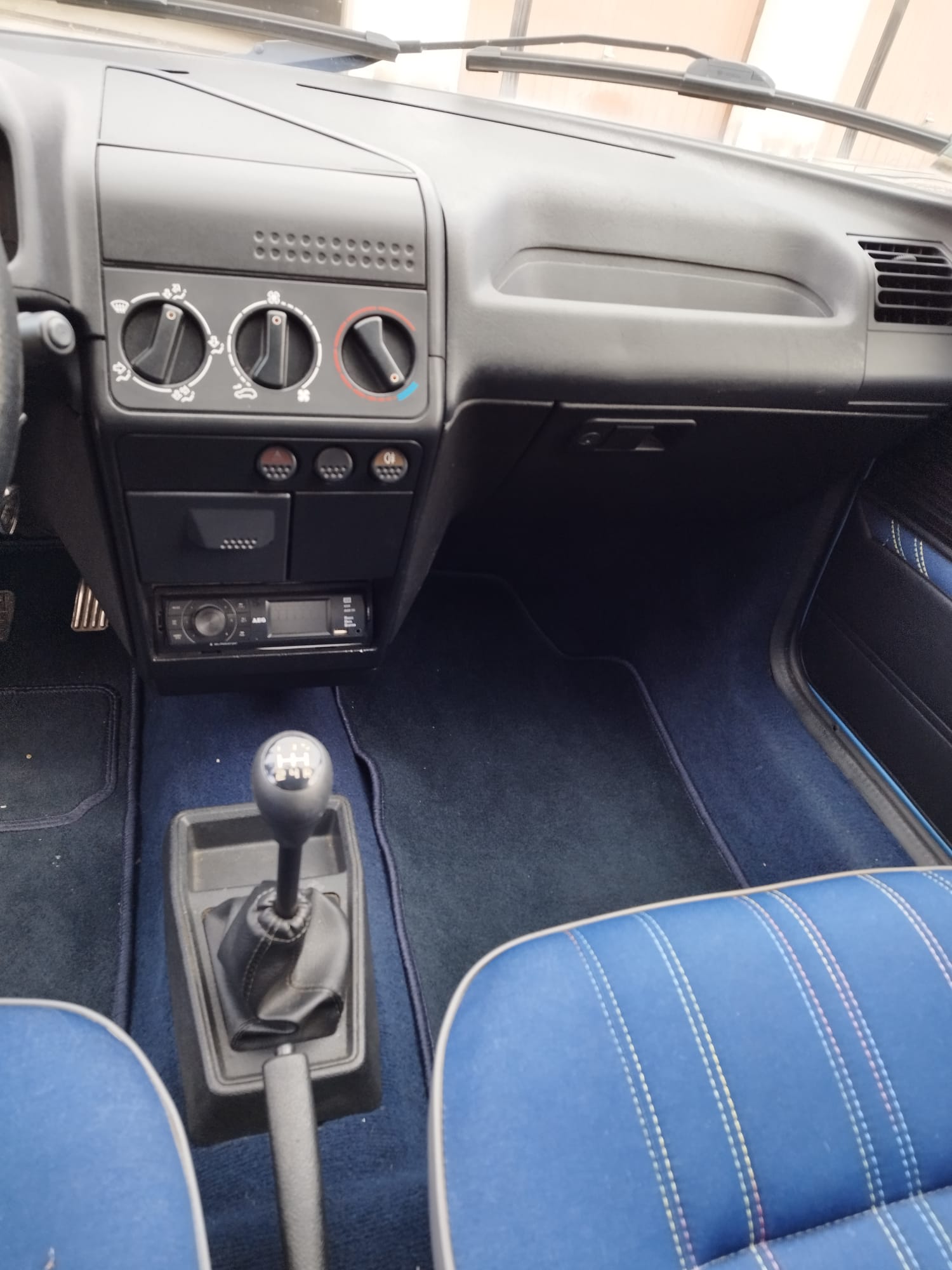Peugeot 205 CJ, couleur bleu azzuro. L’état est impressionnant pour les 31 ans de la voiture.