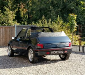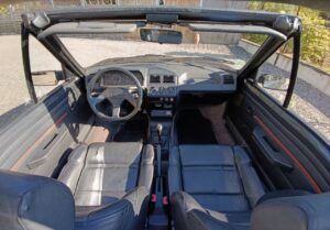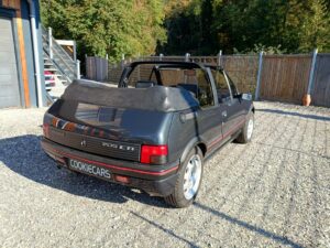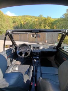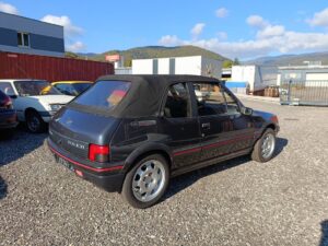 Sellerie cuir noir impeccable. Capote électrique fonctionnelle et en bon état. Jantes 205 GTI 1.9