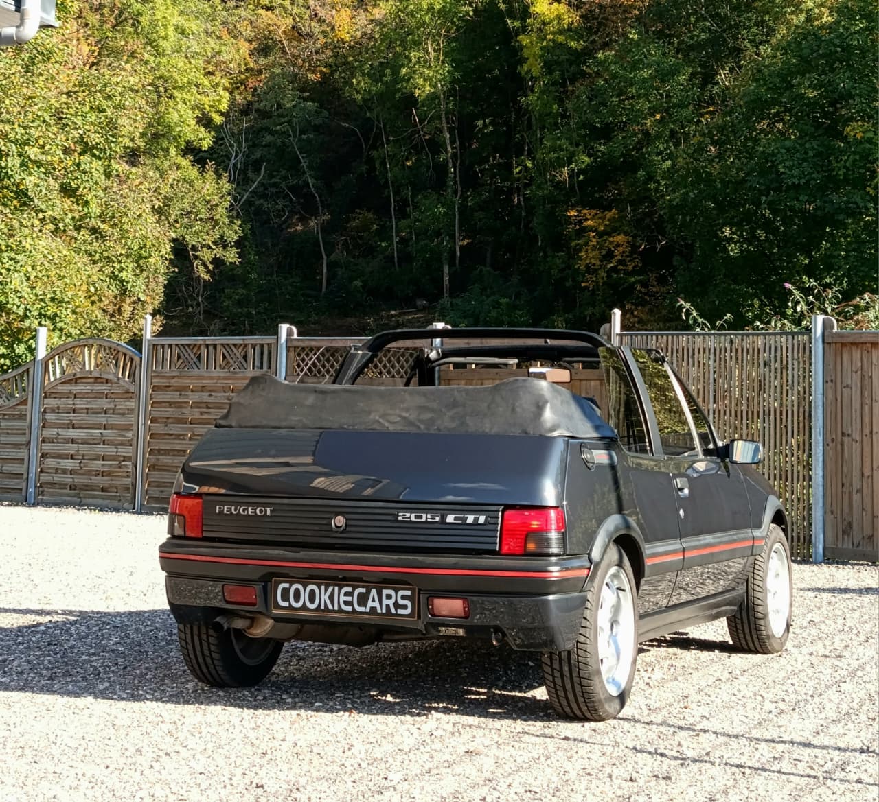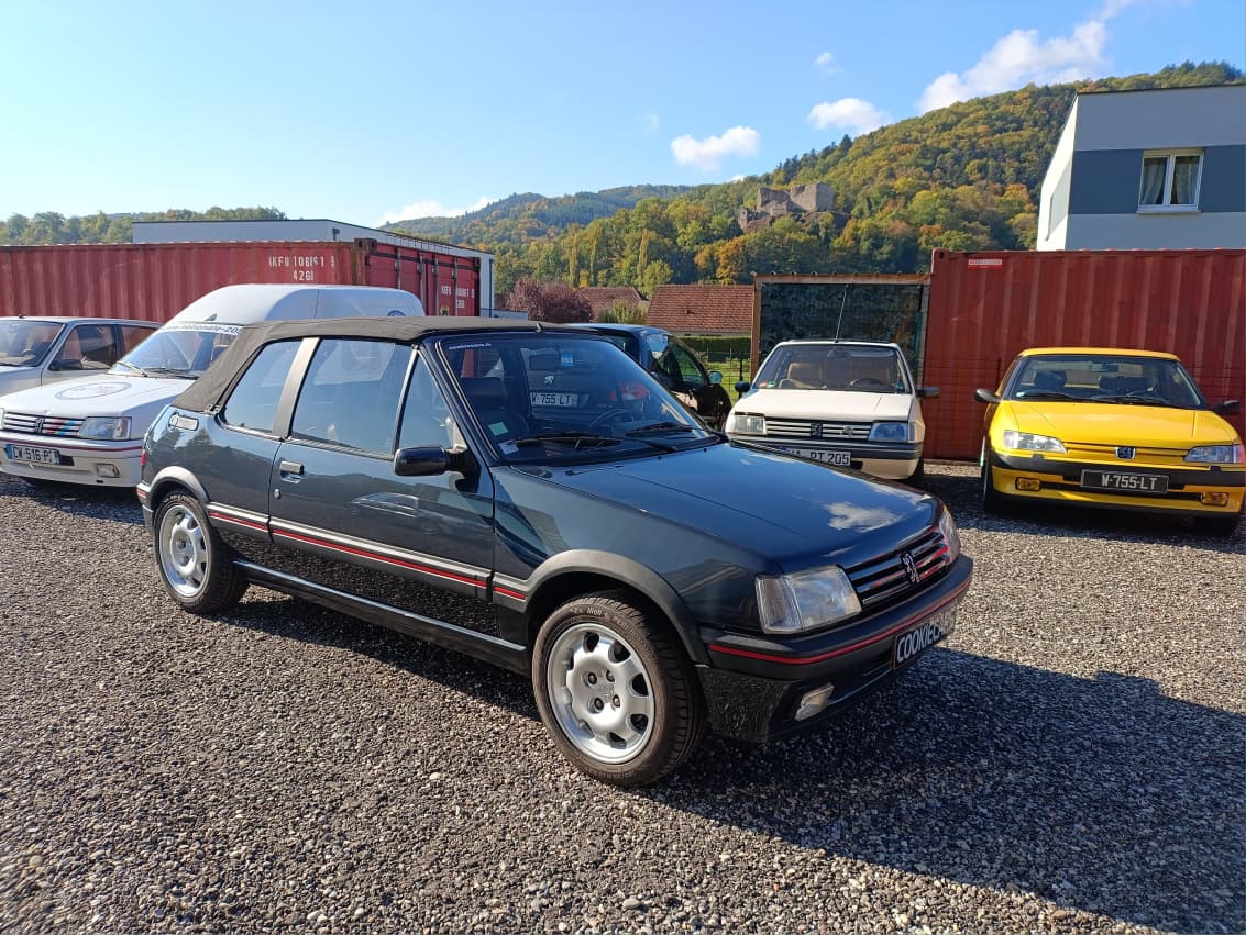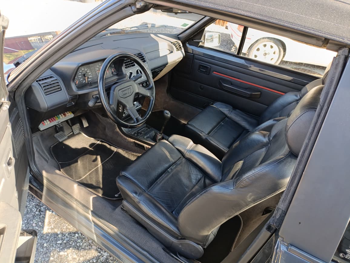 Sellerie cuir noir impeccable. Capote électrique fonctionnelle et en bon état. Jantes 205 GTI 1.9
